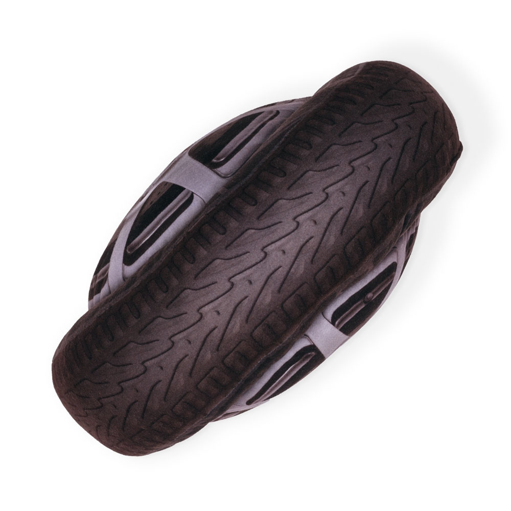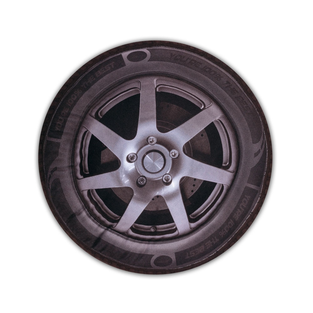 Blazina v obliki pnevmatike ima obojestranski tisk, ki verno posnema videz prave avtomobilske gume.