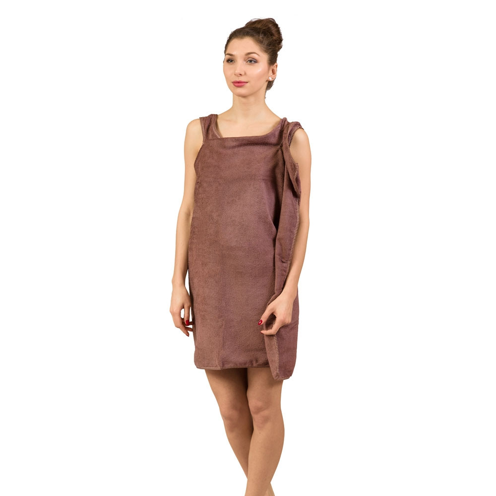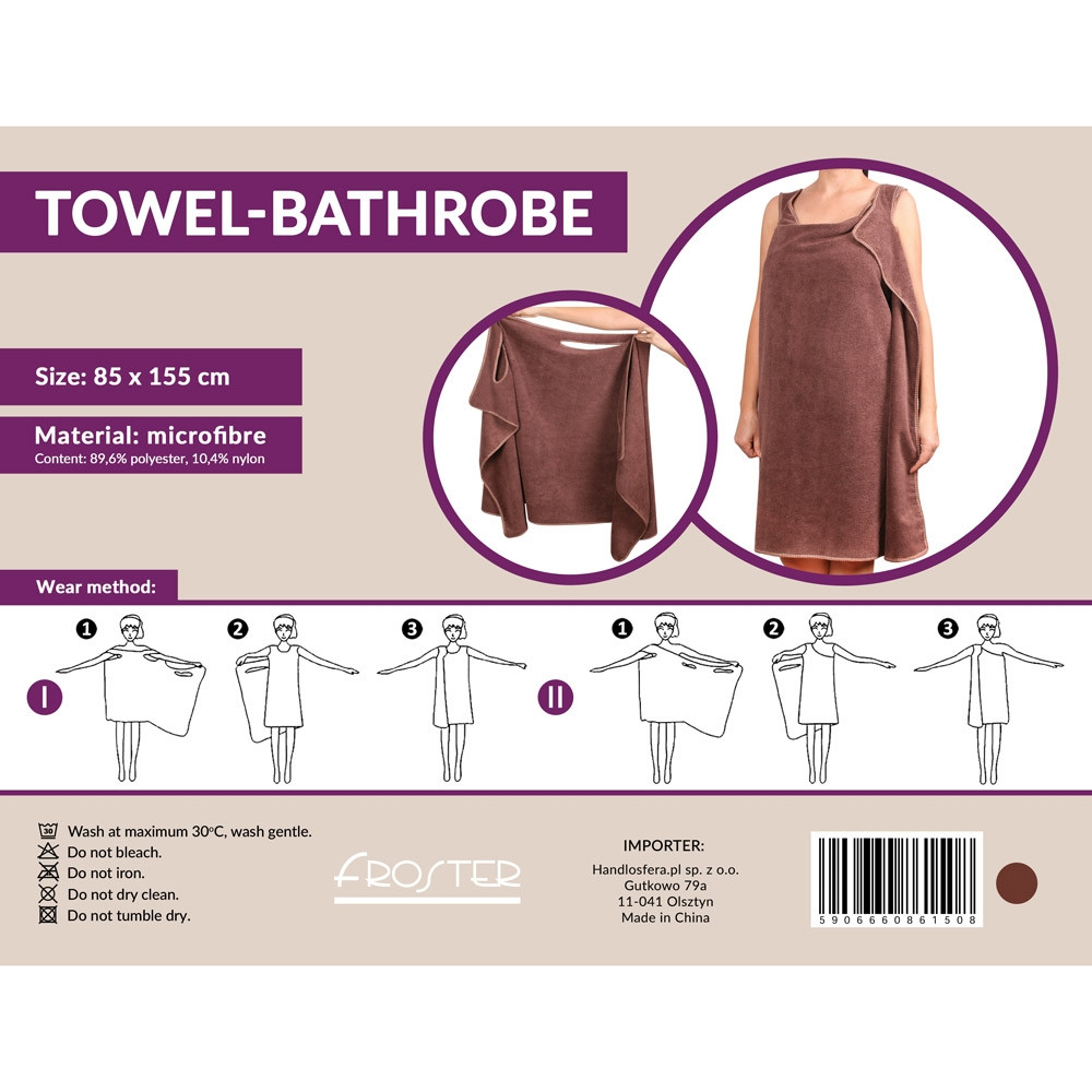 Brisača kopalni plašč z odprtinami za roke rjava je popolna spremljevalka po tuširanju ali savni.