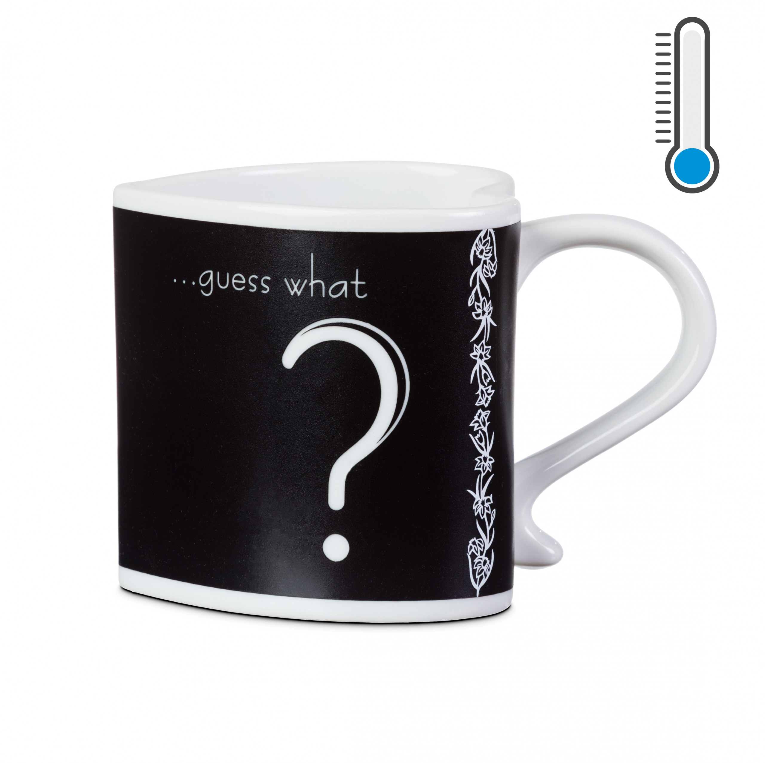 Na začetku na črnem ozadju vidite le vprašanje “Guess what?”, ko pa se skodelica segreje, se razkrije očarljivo sporočilo: