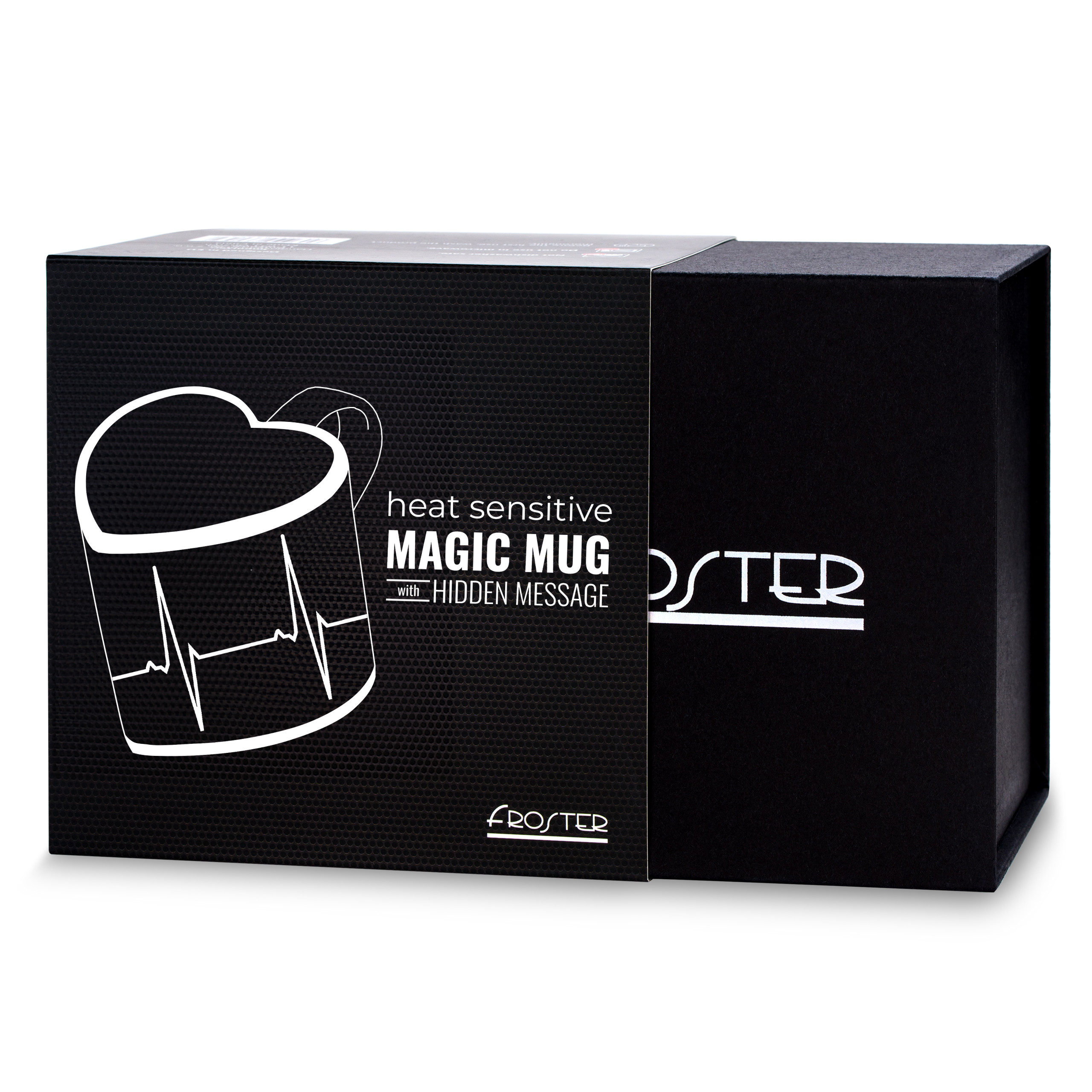 Ko vanjo nalijete vročo pijačo, se črna barva spremeni v belo, linija pa razkrije srce, ki utripne kot znak ljubezni in topline, ki ju delita. 💞