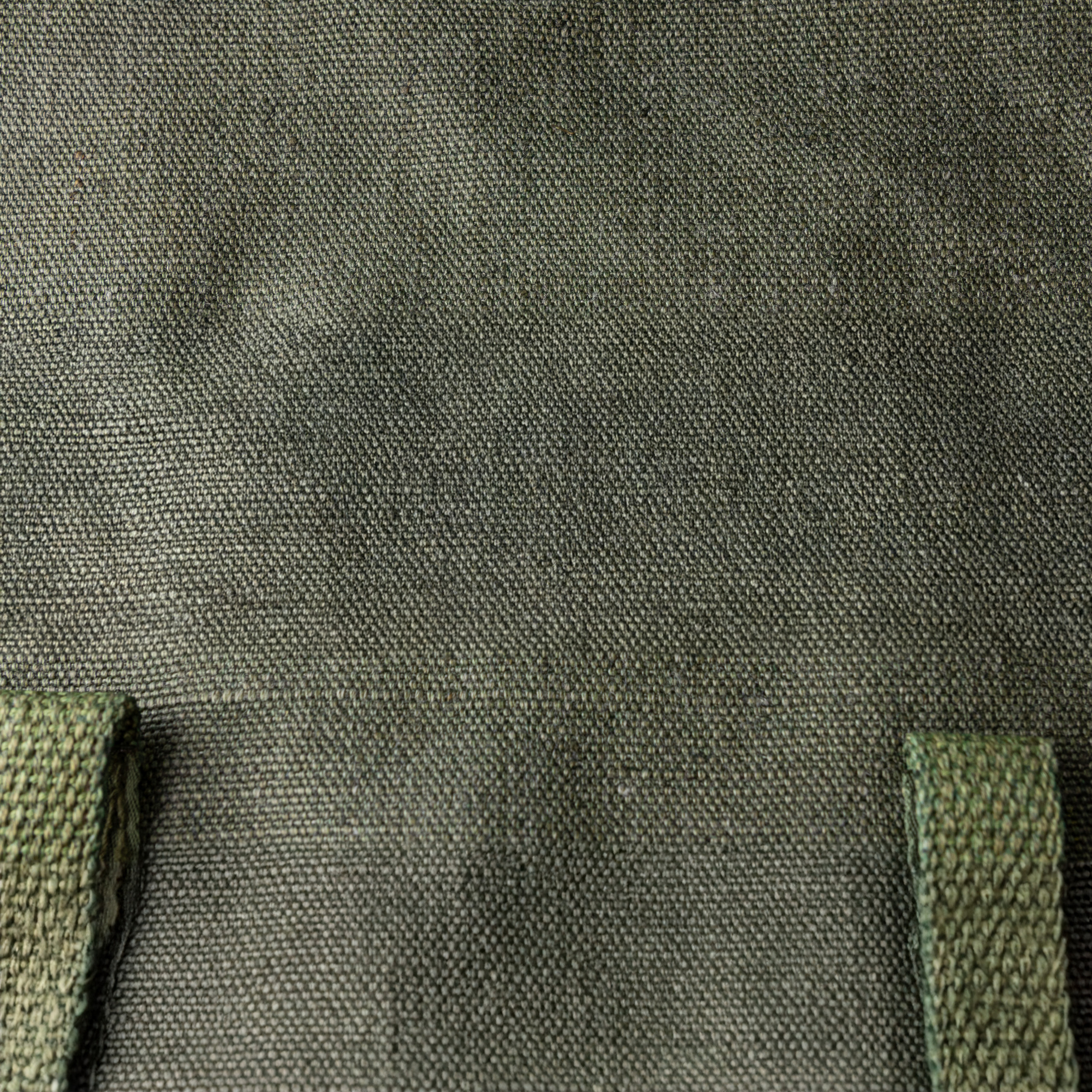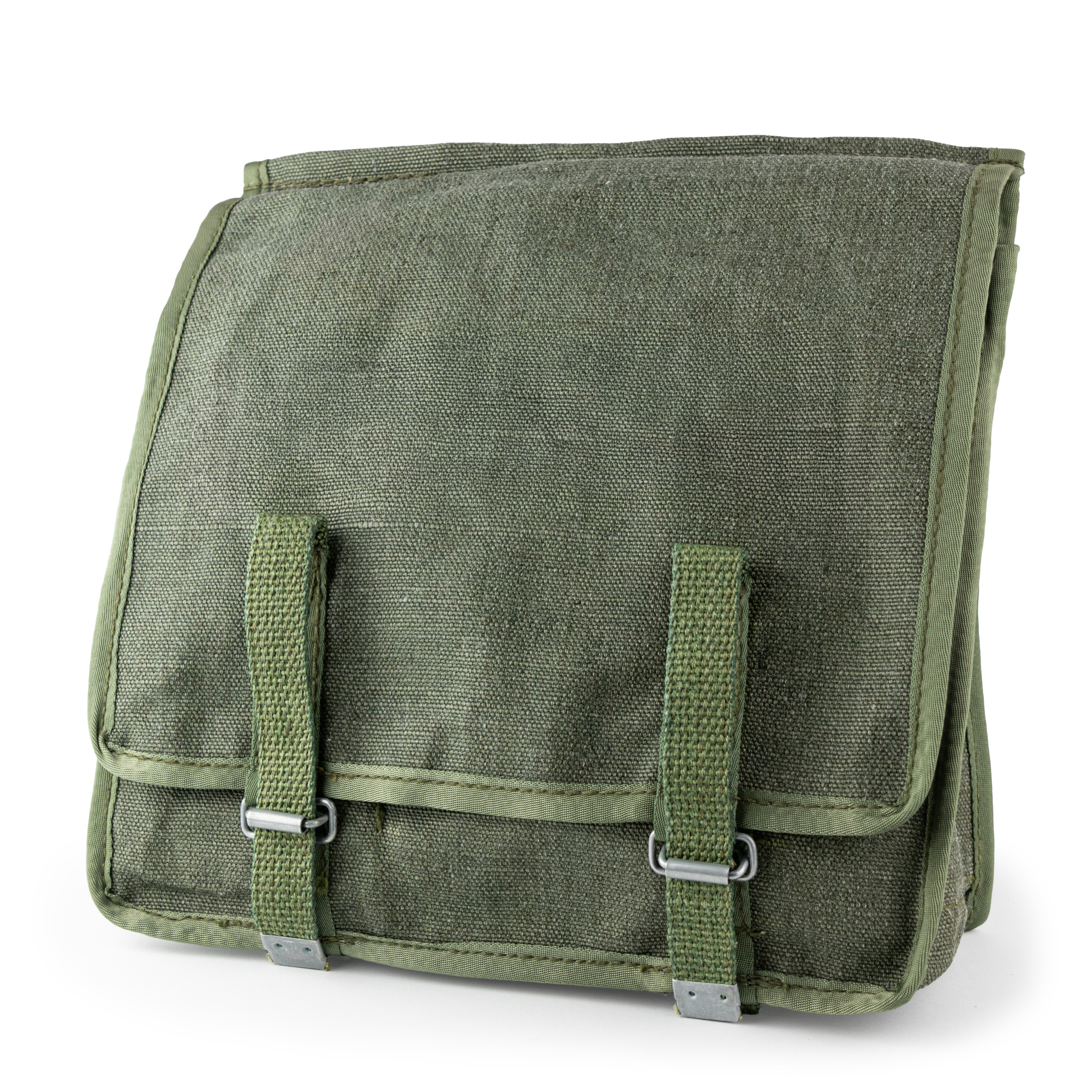 Komplet je pakiran v torbo iz robustnega lanenega platna z močnimi šivi in klasičnim vojaškim videzom.