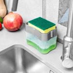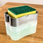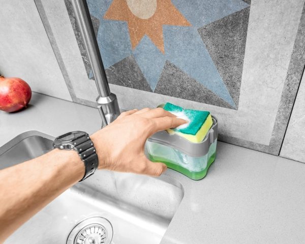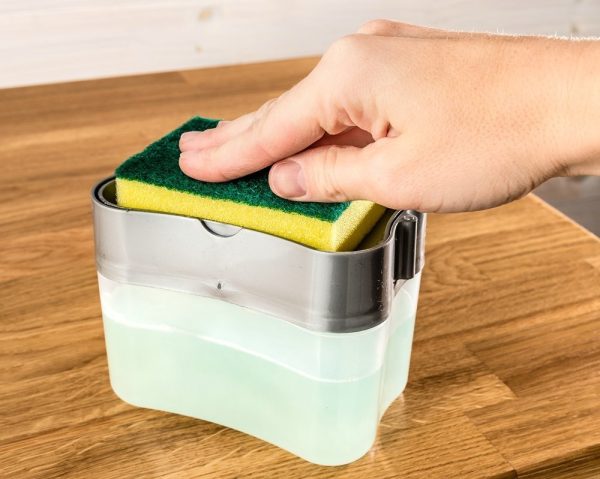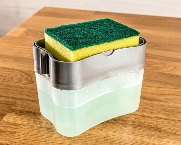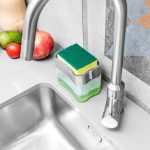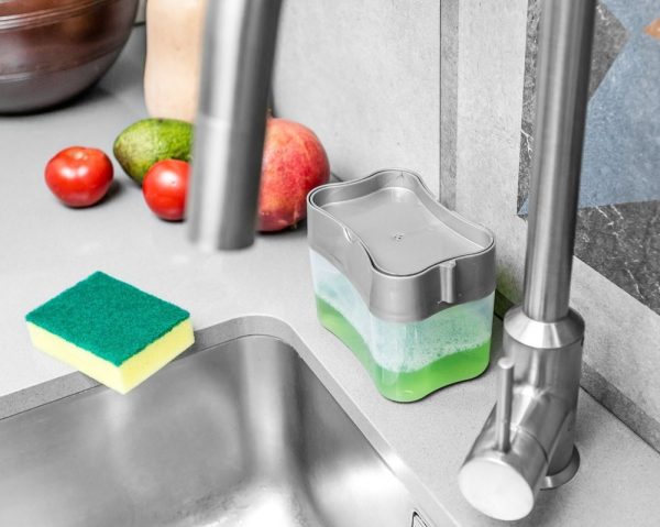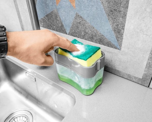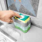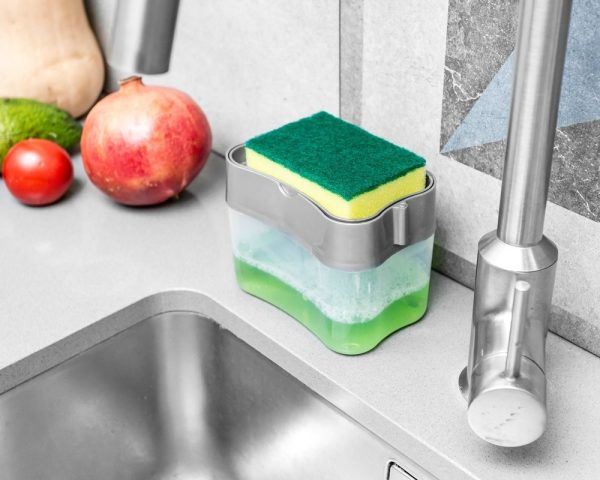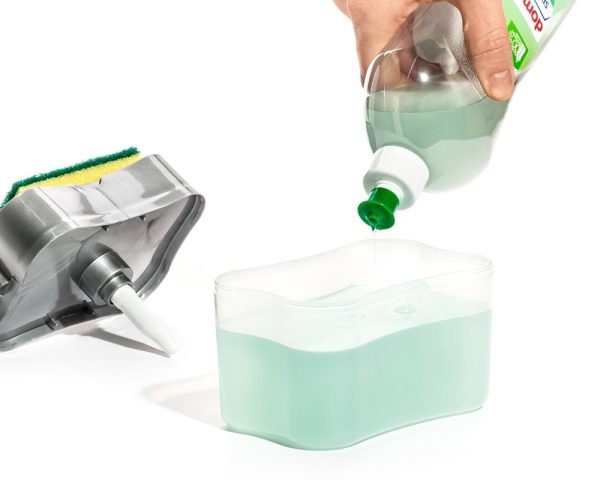 Pozabite na packarijo okoli pomivalnega korita! Ta praktičen dozirnik tekočine z gobico in držalom vam omogoča hitro in čisto pomivanje posode – brez razlitij, brez nereda.