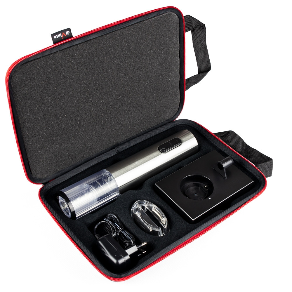 Električni odpirač vina Deluxe – Srebrni set z etuijem je izvrstno darilo za vse, ki radi odprejo vino hitro, elegantno in brez napora.