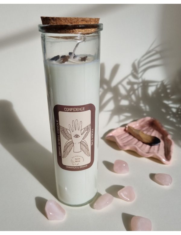 Vnesite moč, odločnost in neomajno samozavest v svoje življenje s posebno energijsko svečo za samozavest. Ta dišeča sveča je ustvarjena za krepitev notranje moči, poguma in samozavesti, saj združuje zaščitni kamen tigrovo oko in energizirajoč vonj cimeta.