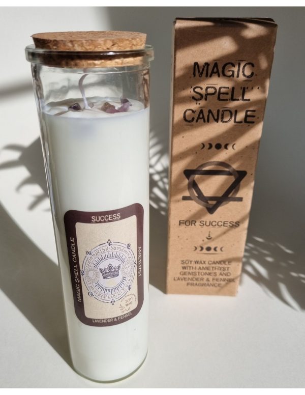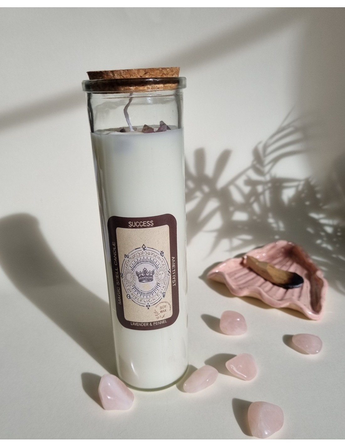 Privabite uspeh, jasnost misli in motivacijo v svoje življenje s posebno energijsko svečo za uspeh. Ta dišeča sveča je ustvarjena za spodbujanje osredotočenosti, notranje moči in doseganje ciljev, saj združuje moč ametista ter stimulativni vonj sivke in komarčka.