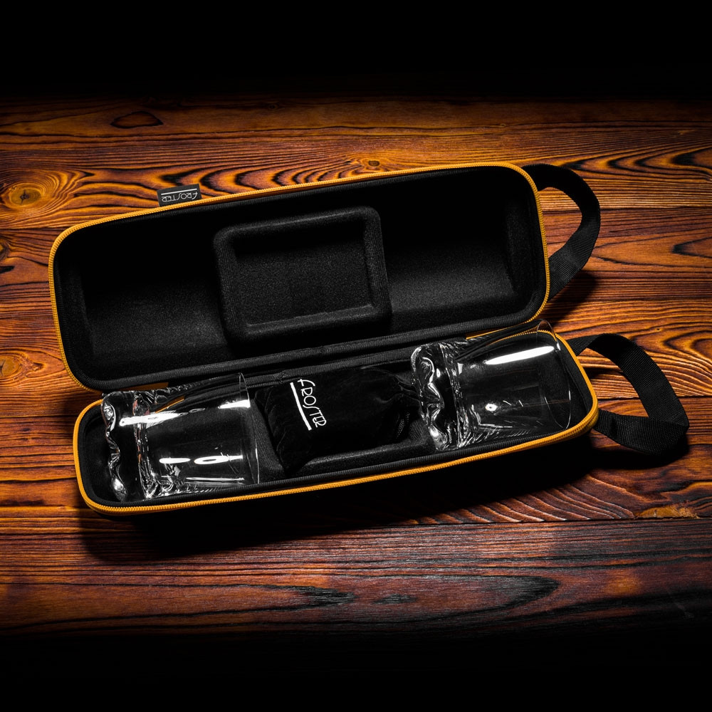 V kompletu prejmete čvrst in trpežen etui iz EVA materiala, ki ščiti kozarce in kamne pred poškodbami. Kompaktna in lahka zasnova omogoča enostavno prenašanje – v kovčku, nahrbtniku ali torbi. Etui je dovolj eleganten, da ga lahko podarite brez dodatnega zavijanja.