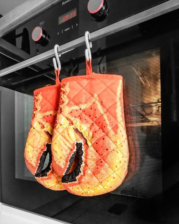 Rokavice so izdelane iz kakovostnih materialov, ki ščitijo vaše roke pred vročino pri rokovanju z lonci, pekači in drugimi vročimi predmeti. Zaradi živahnih barv in igrive oblike so priljubljene tudi kot dekoracija – obesite jih na kavelj in naj kuhinja zaživi v zabavnem tonu!