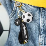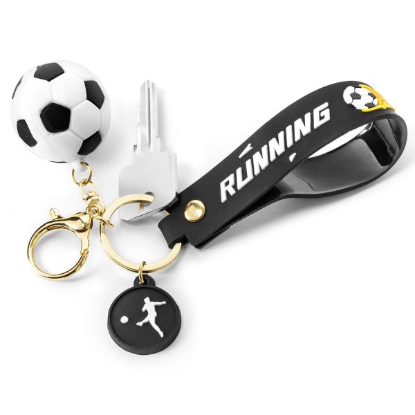 Nogometni 3D obesek za ključe je popolna kombinacija funkcionalnosti, stila in športne energije. Vsebuje natančno izdelano 3D nogometno žogo iz mehkega PVC, črn trak z napisom “RUNNING” in grafiko žoge, ter obesek v obliki silhuete nogometaša. Vse skupaj je povezano z elegantnimi kovinskimi deli v zlati barvi, ki dodajo trajnost in pridih elegance.