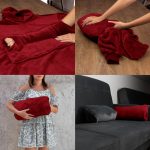 Univerzalna velikost za vse! Mehka in topla pulover & odeja s kapuco 4v1 v prefinjeni bordo barvi združuje toplino odeje, udobje puloverja, praktičnost kopalnega plašča in priročnost blazine. Zaradi oversize kroja (XXL) se prilega vsem postavam in ponuja maksimalno udobje, kjerkoli jo uporabljaš.