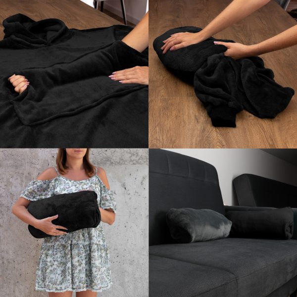 Artikel: Pulover & odeja s kapuco 4v1 – črna XXL