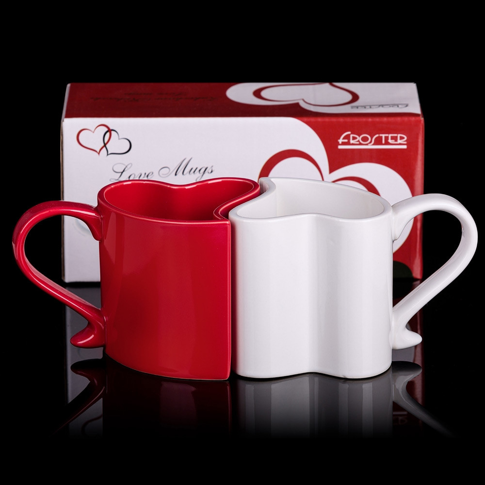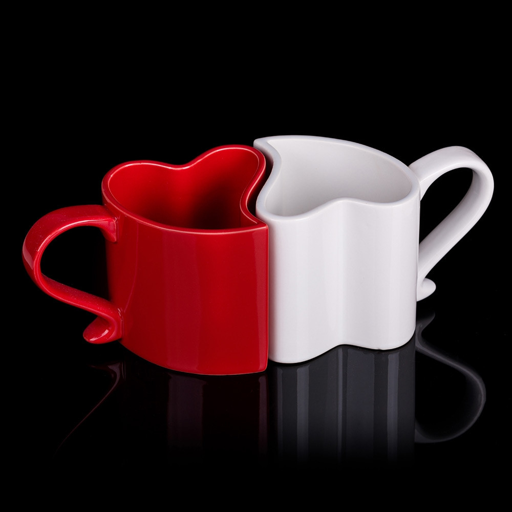Dve skodelici v obliki srca, ki se popolnoma prilegata skupaj