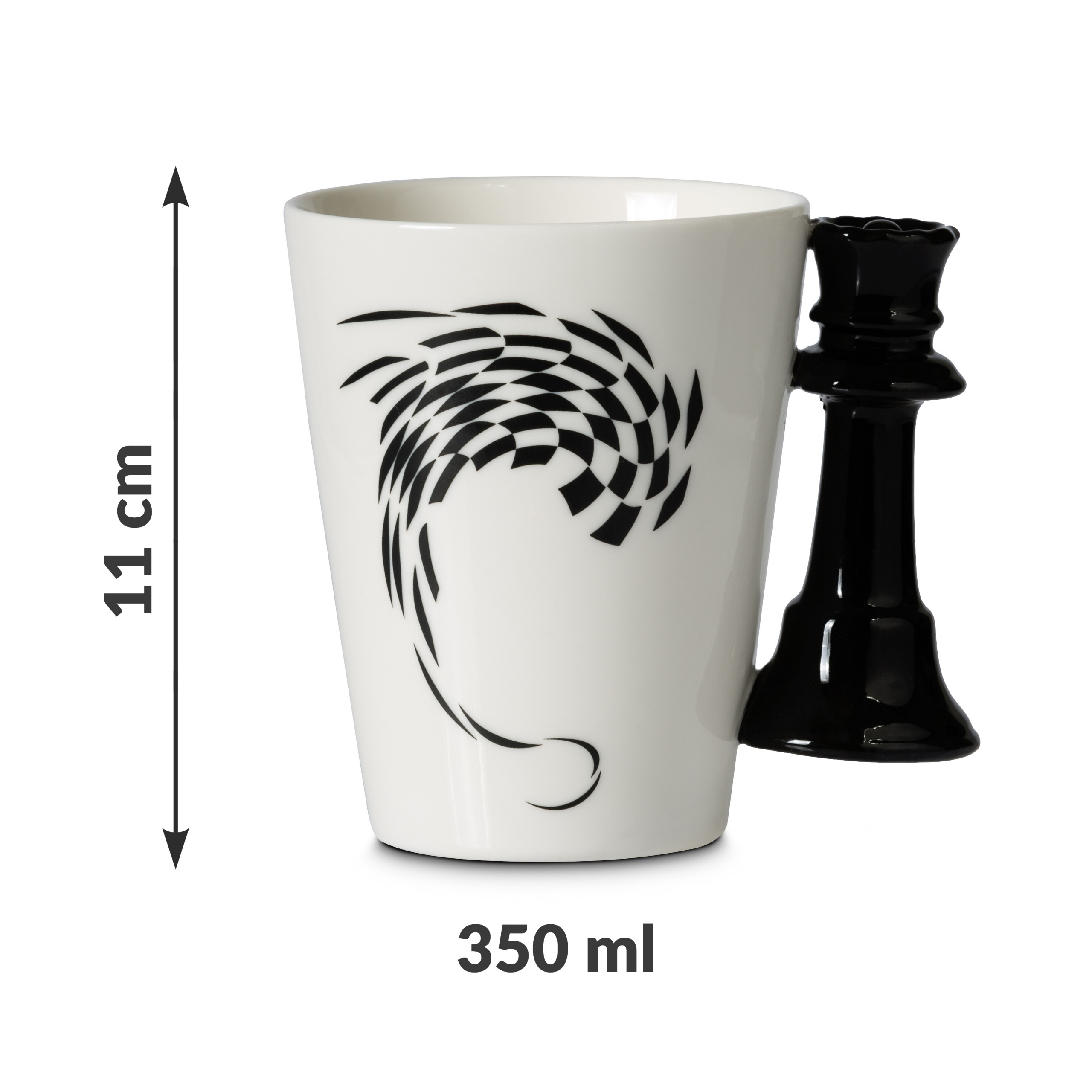 Ročaj v obliki najmočnejše figure na šahovnici – kraljice – predstavlja odločnost in vodstvo, zato je ta skodelica popolno darilo za ljudi z močnim karakterjem in bistrim umom.