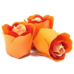 Set 3 milnih vrtnic v srčasti škatli – Breskvina eleganca prinaša toplino, mehkobo in osvežujočo dišavo. Ta prefinjen komplet milnih cvetov v nežnih breskvinih in oranžnih odtenkih je popoln kot dekoracija, darilo ali dodatek za sproščujočo kopel.