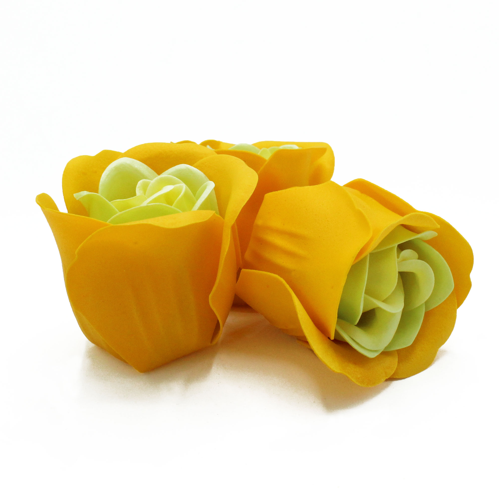 Set 3 milnih vrtnic v srčasti škatli – Pomladna svežina prinaša toplino, energijo in osvežujočo dišavo. Ta prefinjen komplet milnih cvetov v rumenih in kremnih tonih simbolizira veselje in optimizem, hkrati pa je idealen za sproščujočo kopel ali kot unikatno darilo.