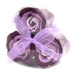 Set 3 milnih vrtnic v srčasti škatli – Sivkina eleganca prinaša občutek sprostitve, prefinjenosti in nežne dišave. Ta razkošen komplet milnih cvetov v čudovitih sivkinih odtenkih je popoln kot dekoracija, darilo ali dodatek za sproščujočo kopel.