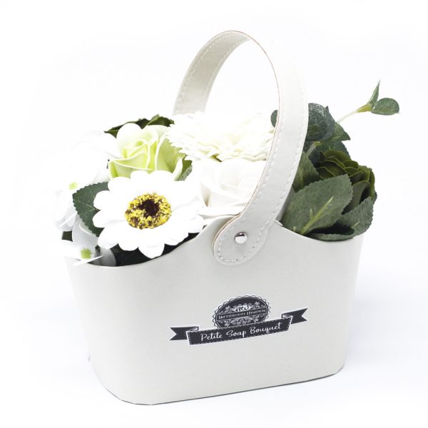 Šopek milnih rož – Pastelno zelena košarica je popolna kombinacija elegance in svežine. Ta prefinjena aranžmaja v svetli košarici združuje nežne bele in zelene milne cvetove, ki jih lahko uporabite za sproščujočo kopel ali kot dekoracijo v vašem domu.