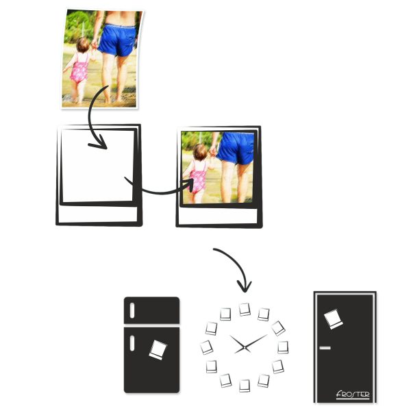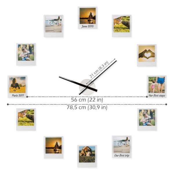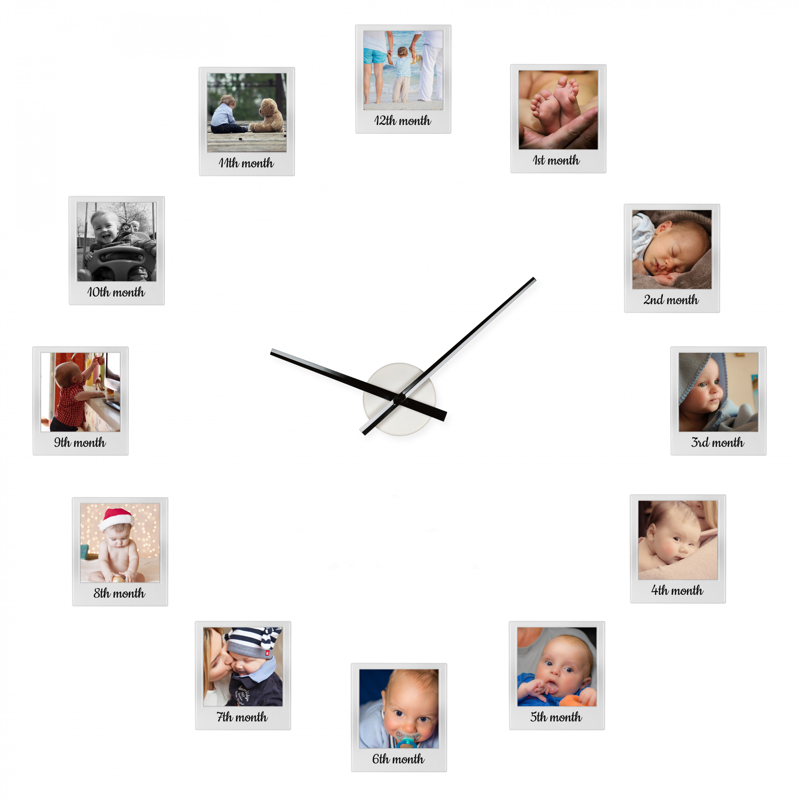 Namesto številk ima dvanajst okvirjev za fotografije, v katere lahko vstavite svoje najljubše slike – od družinskih trenutkov, poročnega dne, počitnic ali otrokovega prvega leta življenja.