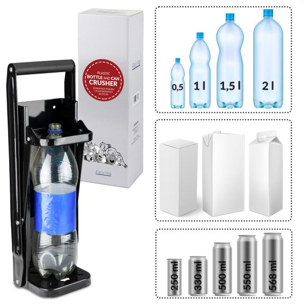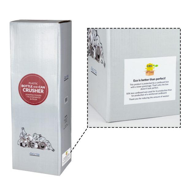 Stenski stiskalnik GIANT Crusher 3v1 je vsestranski pripomoček, namenjen stiskanju plastenk, aluminijastih pločevink in kartonskih tetrapakov. Zaradi svoje velike velikosti (50 cm višine) in močne kovinske konstrukcije je kos tudi večjim embalažam, hkrati pa omogoča preprosto in hitro uporabo. Z njim lahko bistveno zmanjšaš količino gospodinjskih odpadkov in prihraniš prostor v zabojniku za reciklažo.