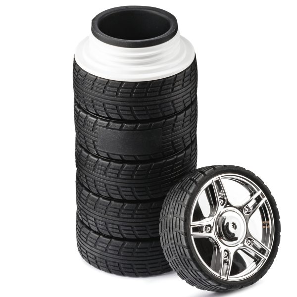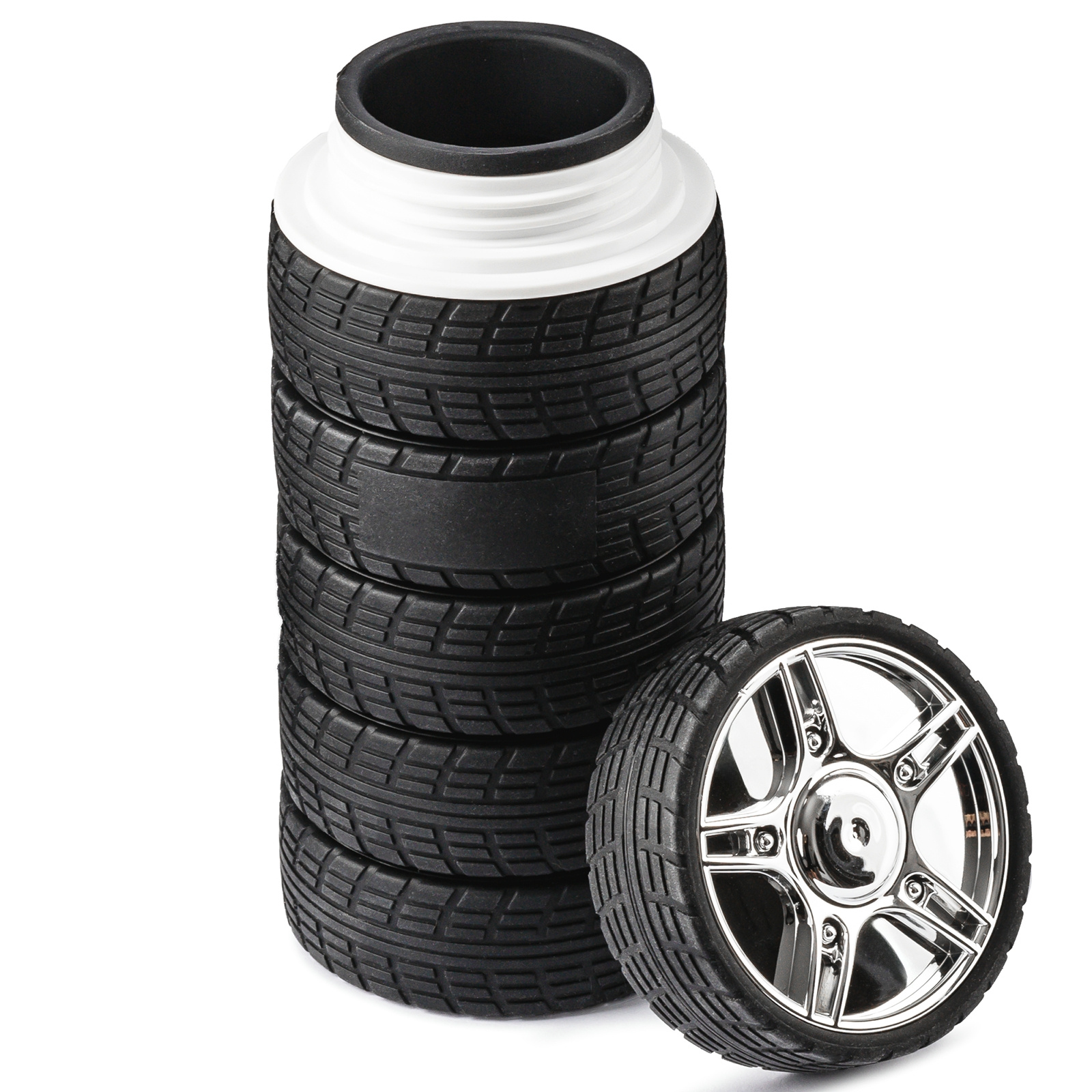 Zložljiva silikonska steklenica v obliki gume TYRES bo navdušila vse avtomobilske navdušence in ljubitelje izvirnih dodatkov. Zasnovana v obliki kupa avtomobilskih gum, bo zagotovo izstopala na poti, v službi, telovadnici ali na izletu.