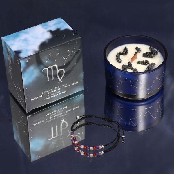 Povežite se s praktično, a intuitivno energijo Device s to unikatno kristalno svečo. Njena zemeljska dišava z vonjem drevesnega ahata in ouda ustvarja prizemljeno in pomirjujoče vzdušje, ki odraža Devicino ljubezen do narave, reda in harmonije.
